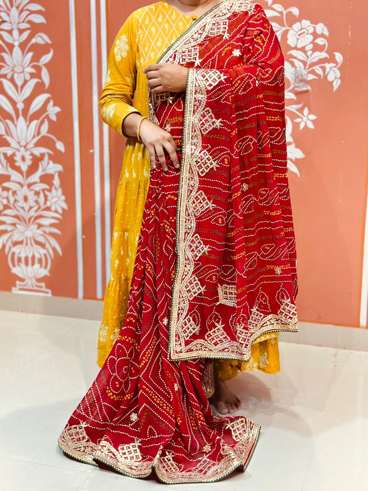 PURE VISCOSE GEORGETTE BHANDEJ SAREE