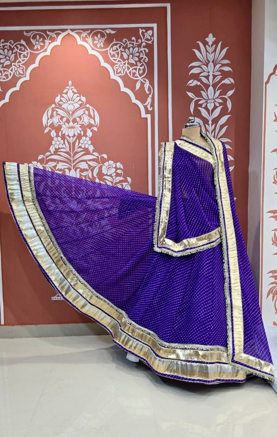 ROYAL PURPLE MOTHRA GOTA BORDER FULL FLARED LEHENGA