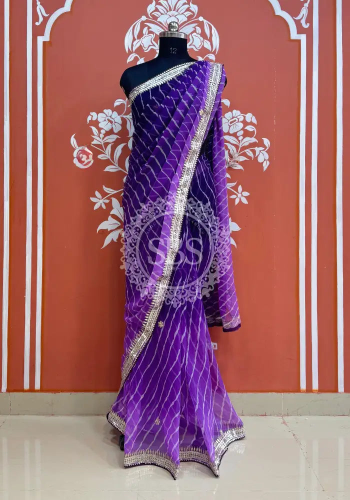 30 GM ROYAL GEORGETTE LEHERIYA GOTA PATTI SAREE Purple / Free Size