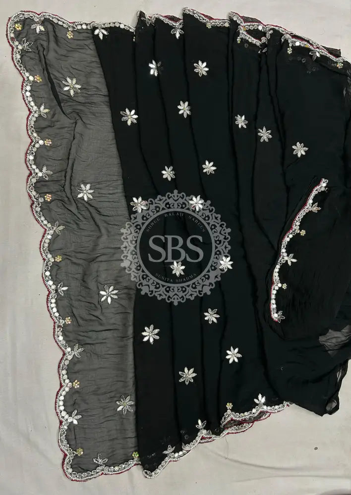 CHIFFON CUTWORK DESI GIRL SAREE Black / Free Size