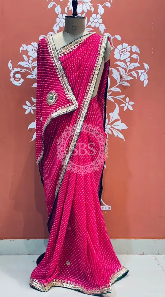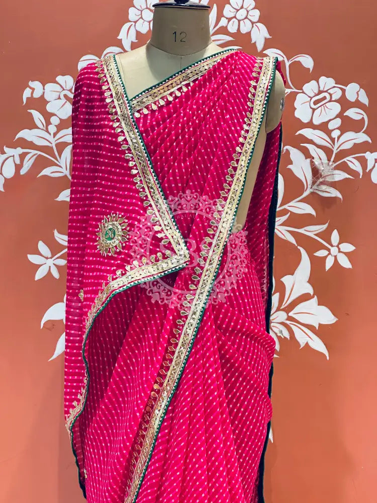 CXC GEORGETTE MOTHRA SILVER WORK SAREE Pink / Free Size