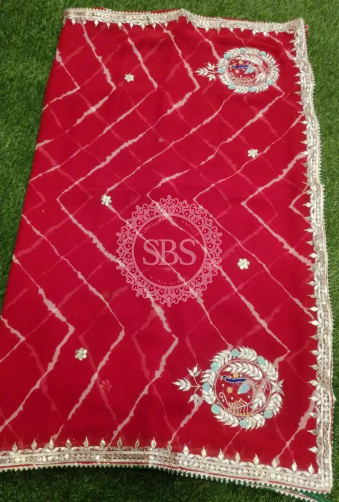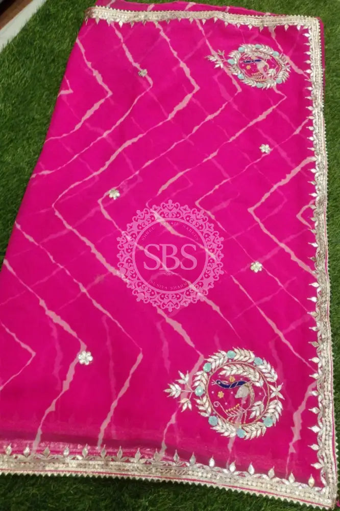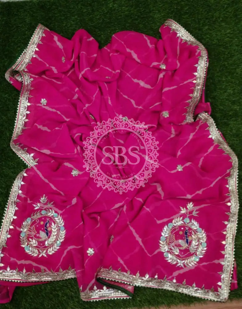 GEORGETTE GOTA PATTI SAREE Green / Free Size