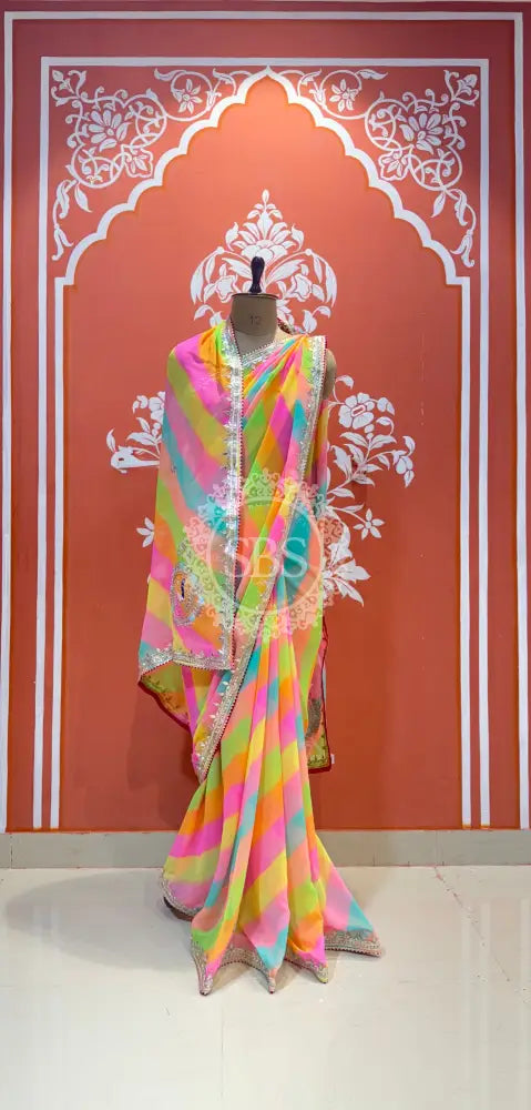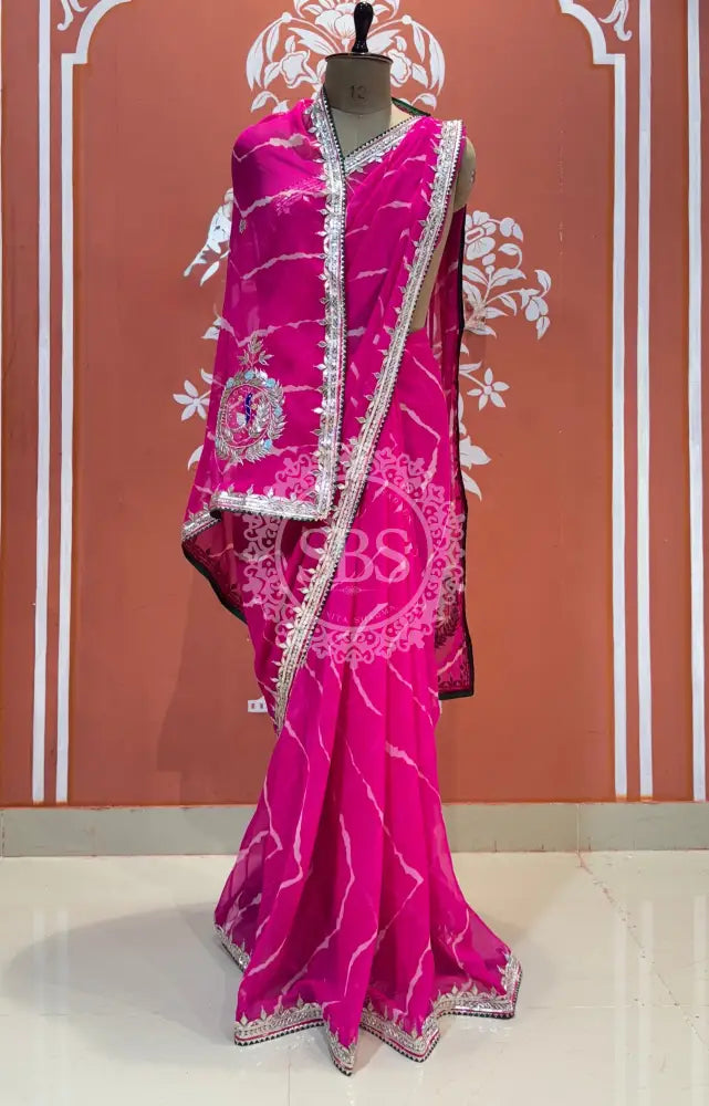GEORGETTE LEHERIYA GOTA PATTI PEACOCK SAREE Pink / Free Size