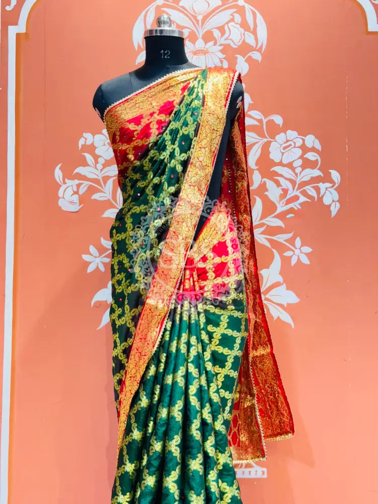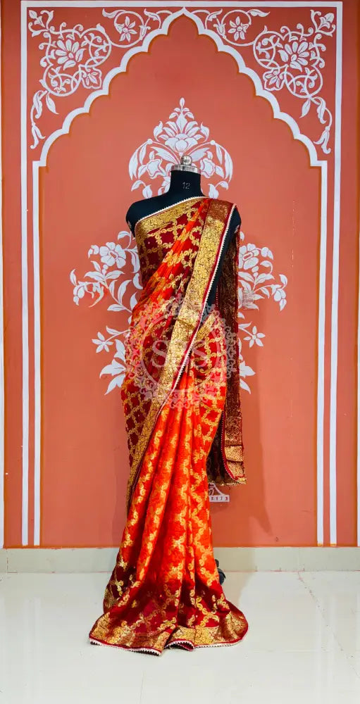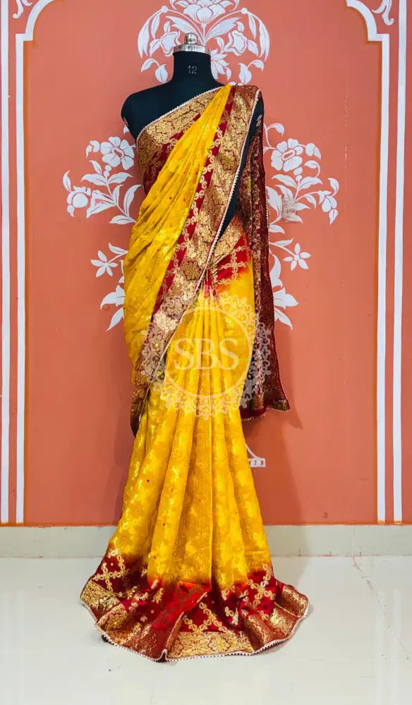 GHATCHOLA TAFETA SILK SAREE Yellow Red / Free Size