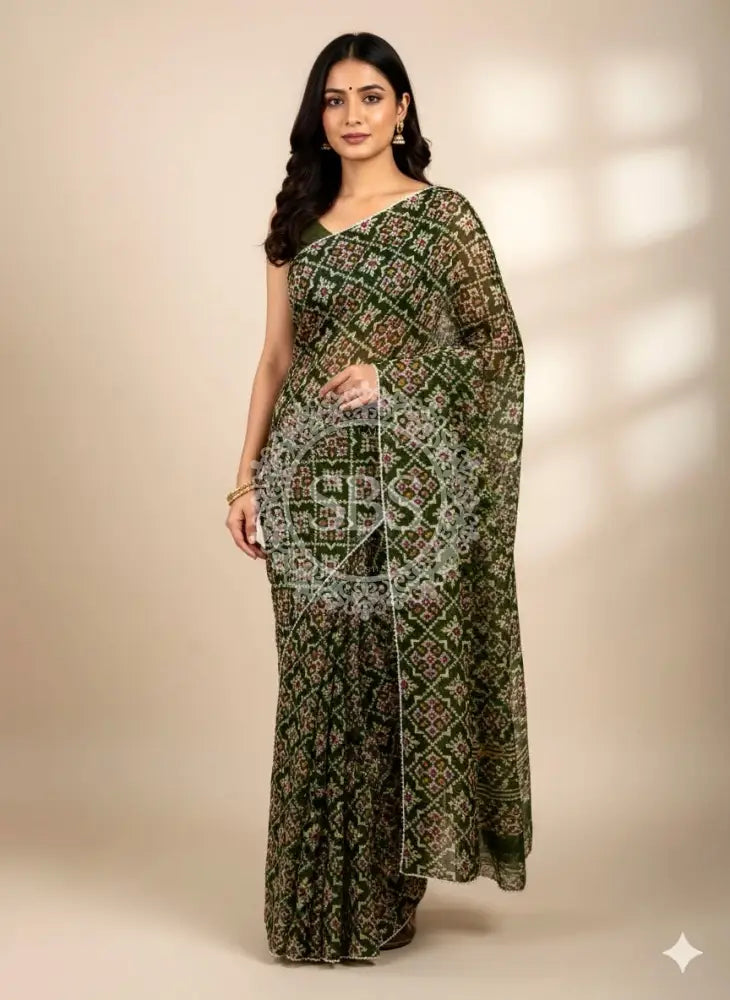 Experience timeless elegance with the Kota Doriya Ajrak Saree, a perfect blend of traditional craftsmanship and graceful style. This saree features lightweight, breathable Kota Doriya fabric woven to perfection, adorned with exquisite and classic Ajrak patterns that add cultural depth. Ideal for festive occasions or casual gatherings, it offers comfort without compromising on sophistication. Elevate your wardrobe with this unique piece that celebrates heritage while keeping you effortlessly chic.