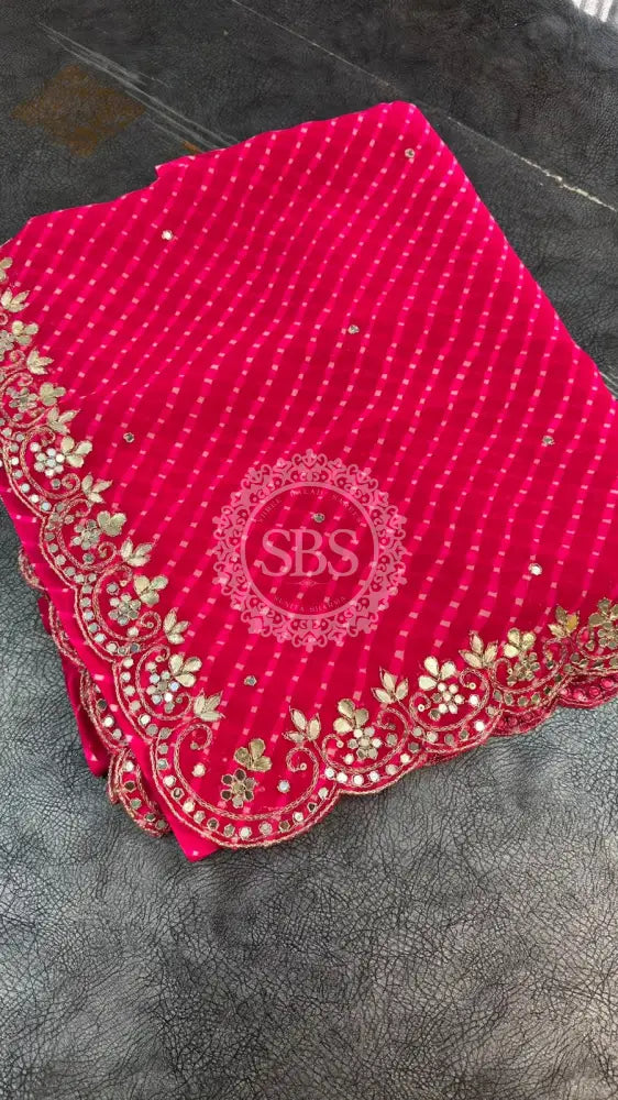 Work Handcrafted Gota Patti Embroidery on Borders & Pallu