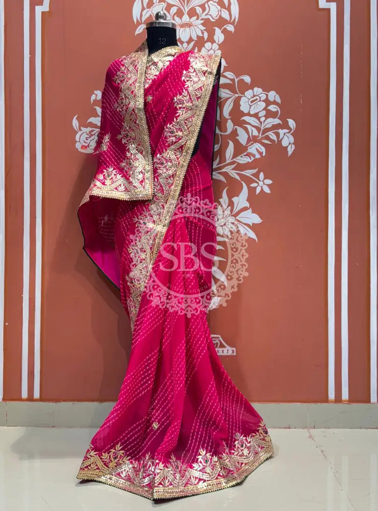 MOTHRA LEHERIYA CXC GEORGETTE SAREE Pink / Pink