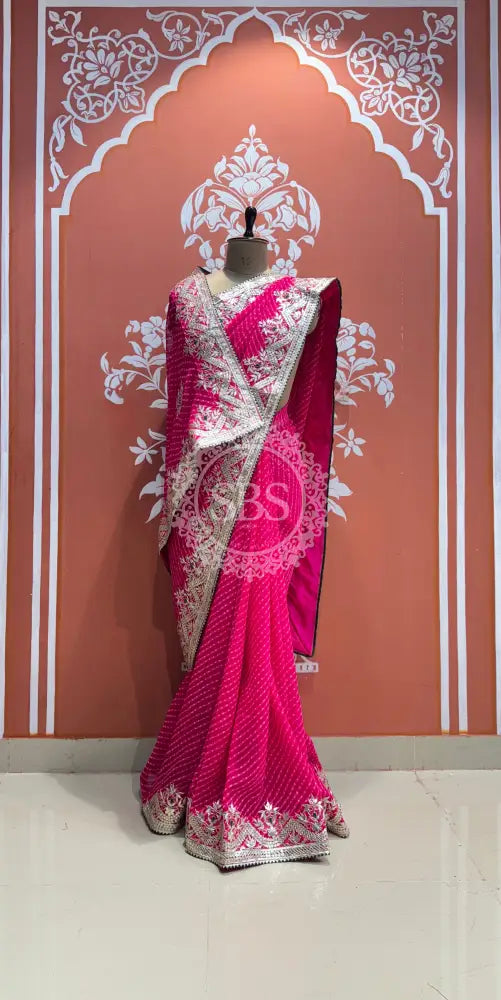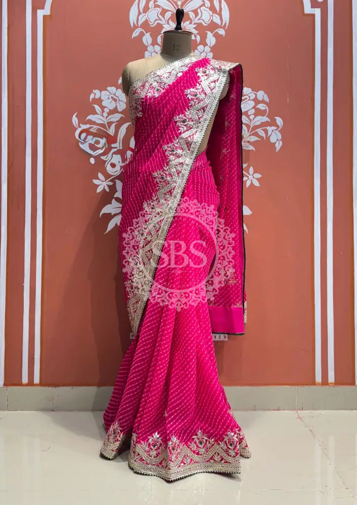 MOTHRA LEHERIYA GOTA PATTI SAREE Pink / Free Size