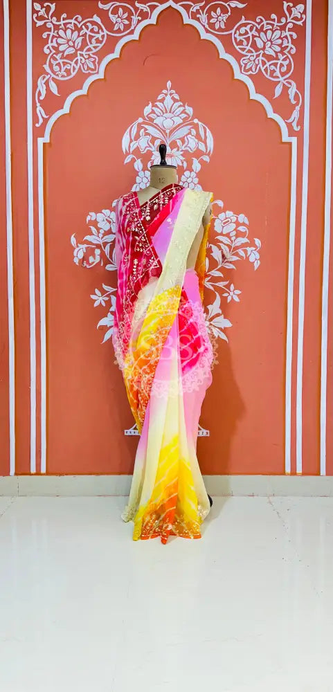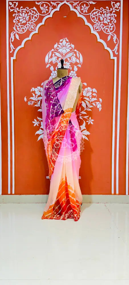 PURE DIAMOND CHIFFON PITTAN WORK SAREE