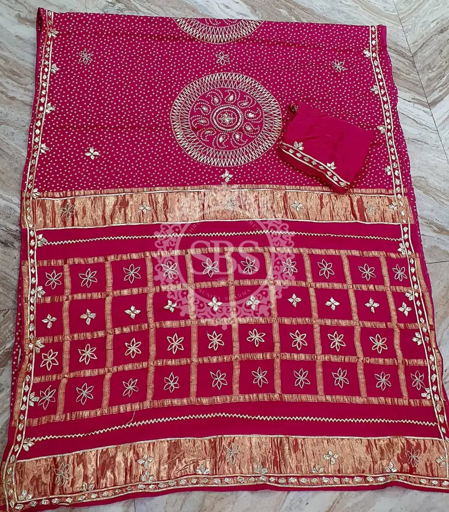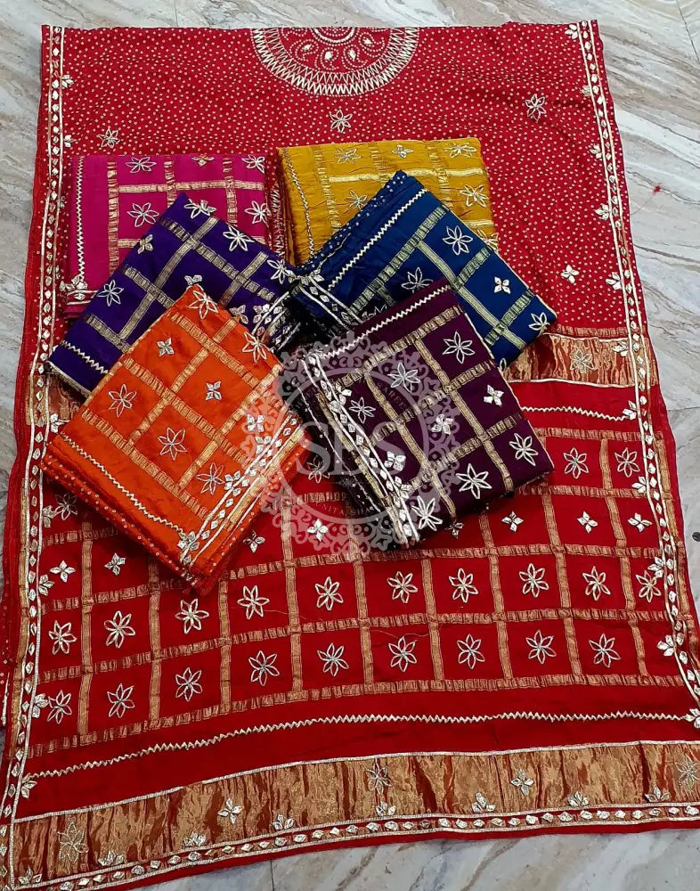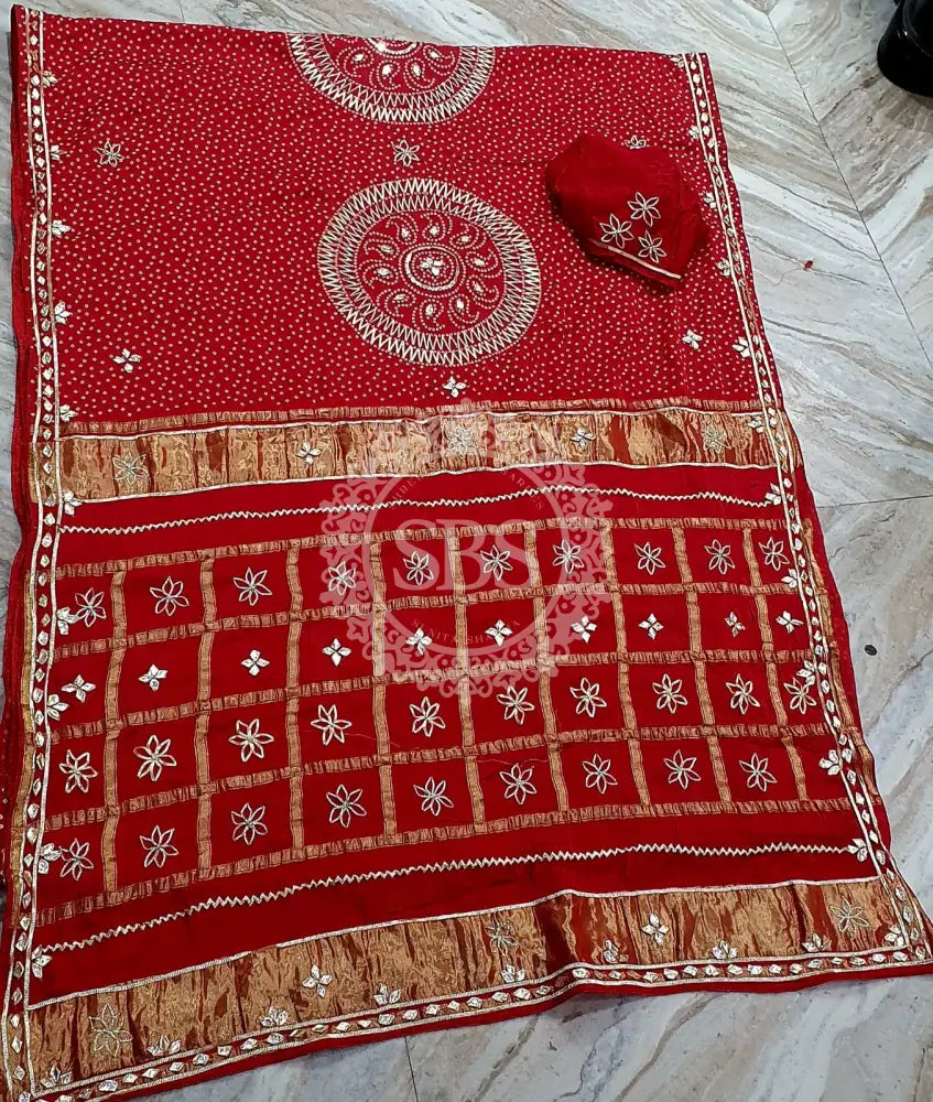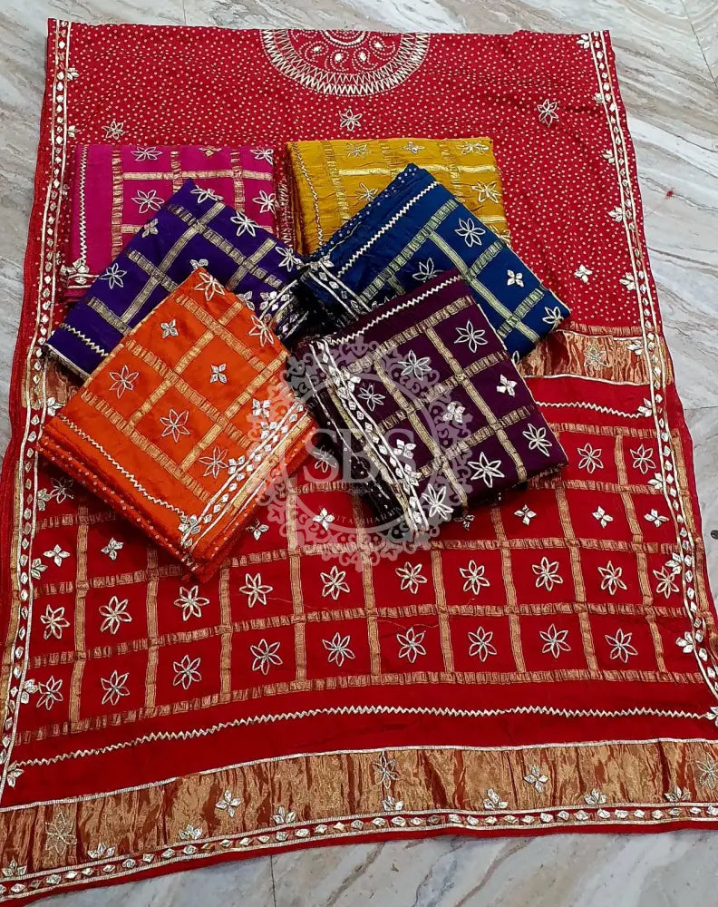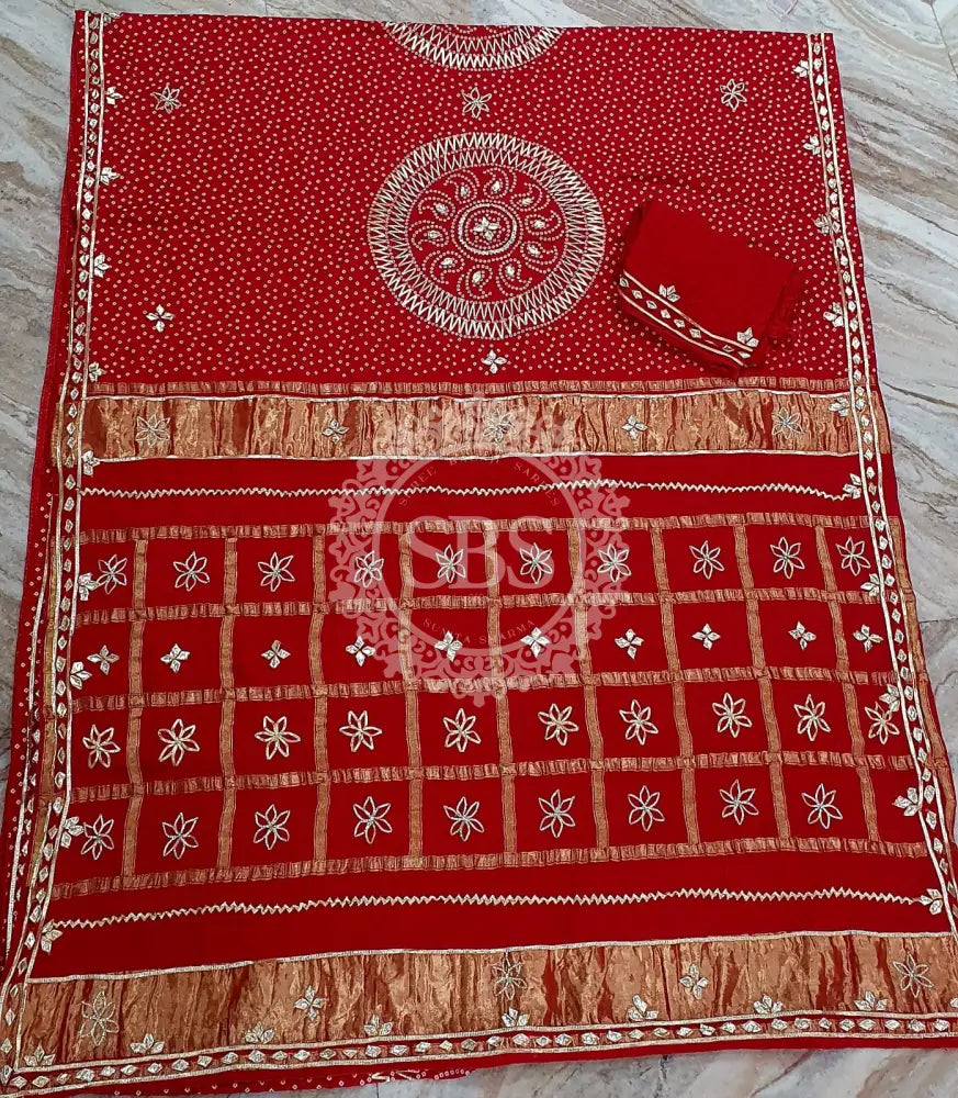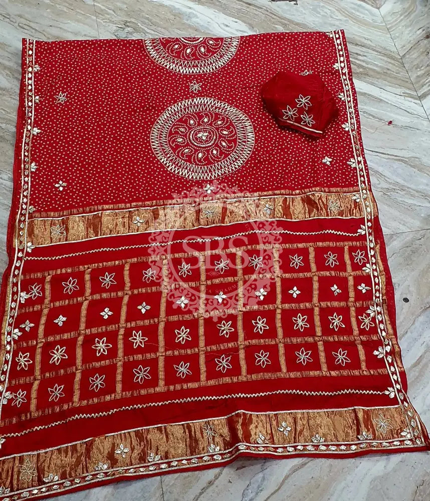 PURE GAZI SATIN SILK SAREE Red / Free Size