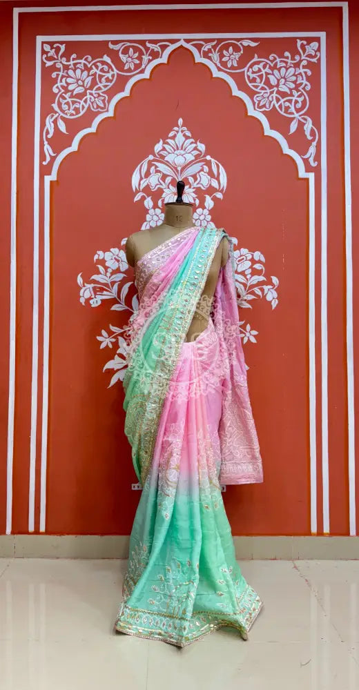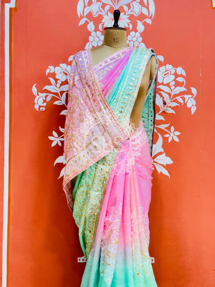 PURE UPADA SILK KACCHI PATTI SAREE Sky Blue / Free Size