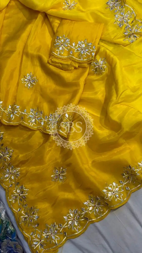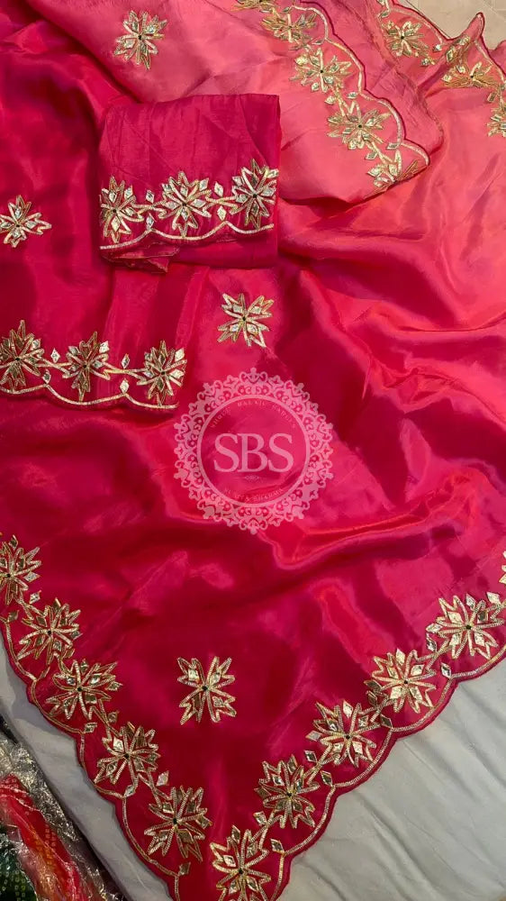 Work Handcrafted Kachi Gota Patti Work on Borders & Pallu