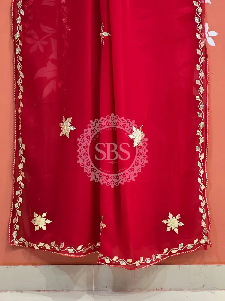 ROYAL GEORGETTE BOOTA SAREE Red / Free Size