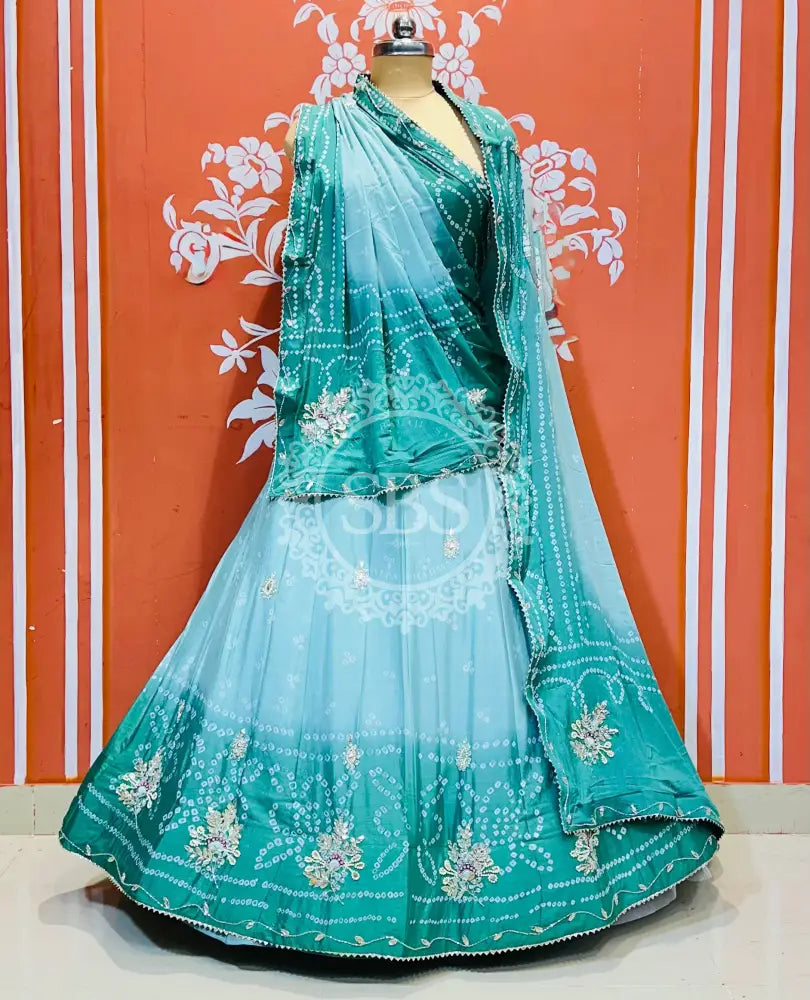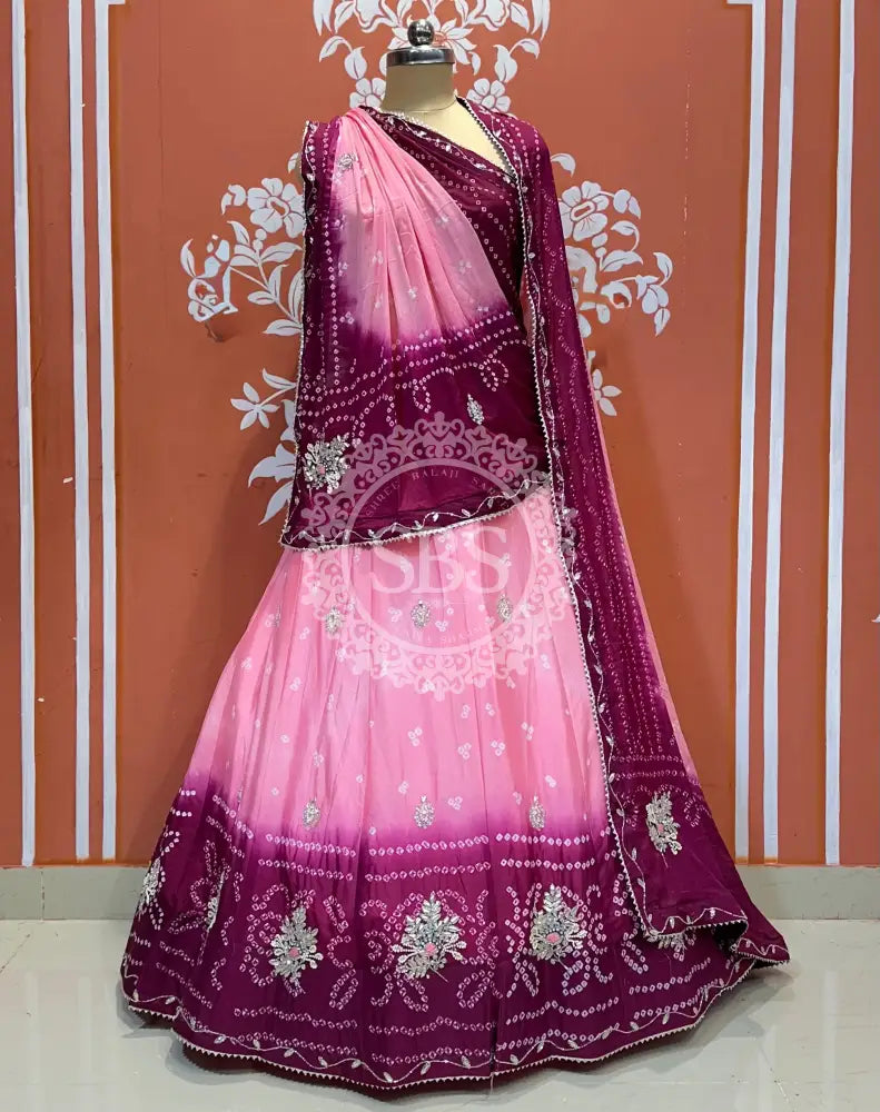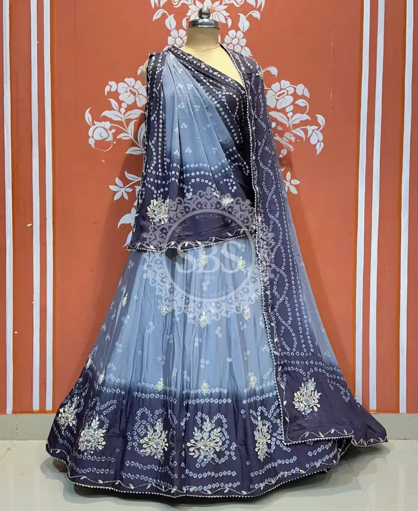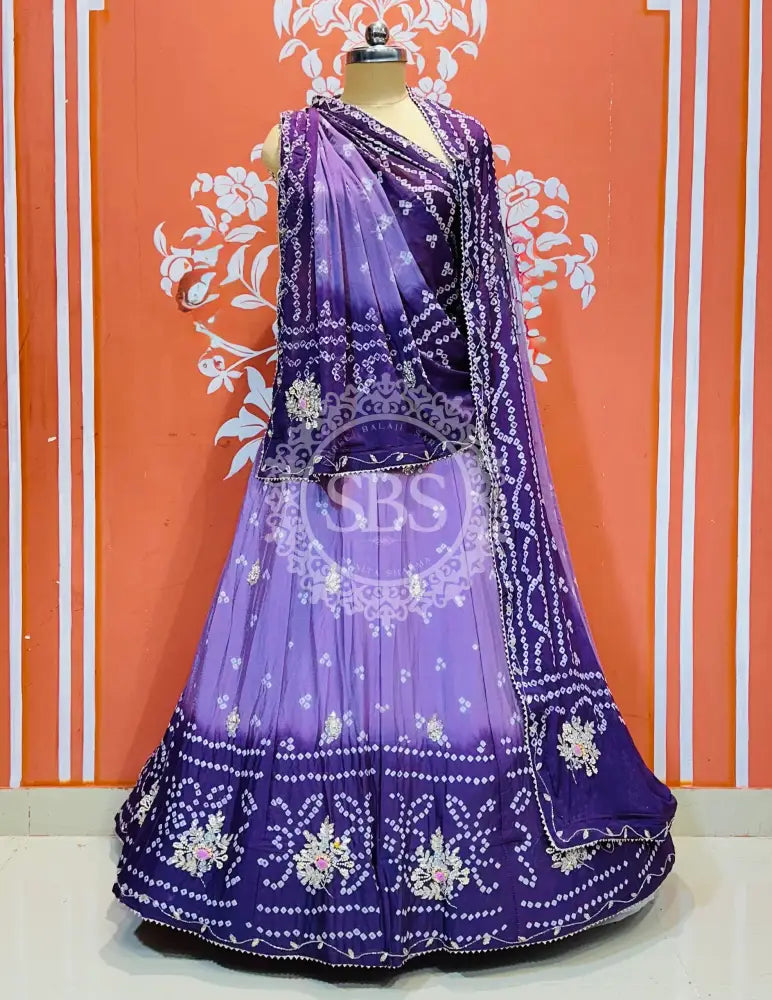 Product Name Chinon Bandhej Kacchi Patti Lehenga