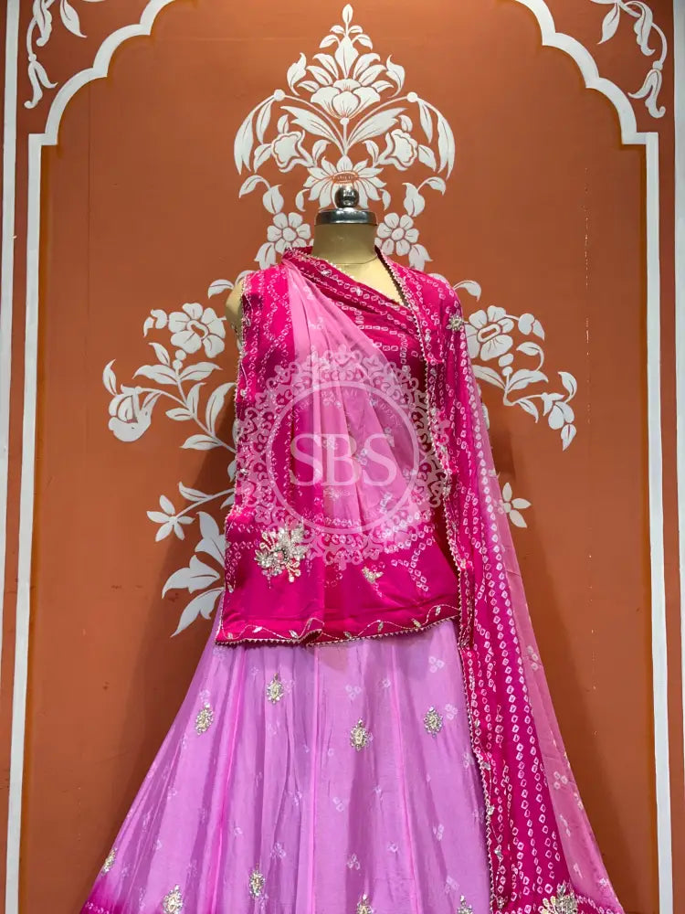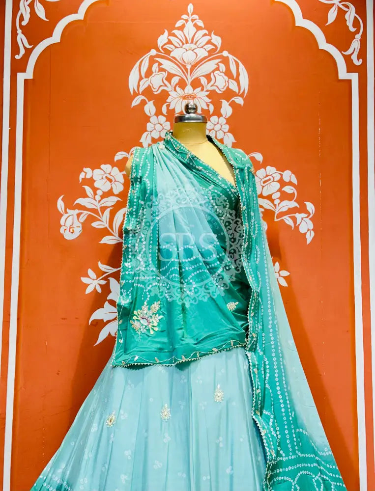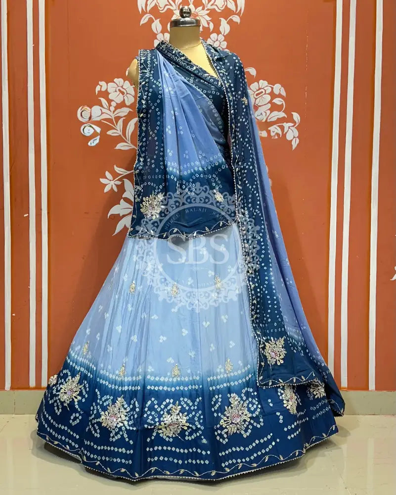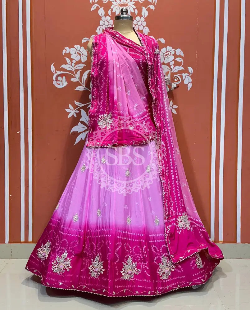 Product Name Chinon Bandhej Kacchi Patti Lehenga