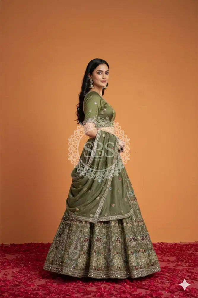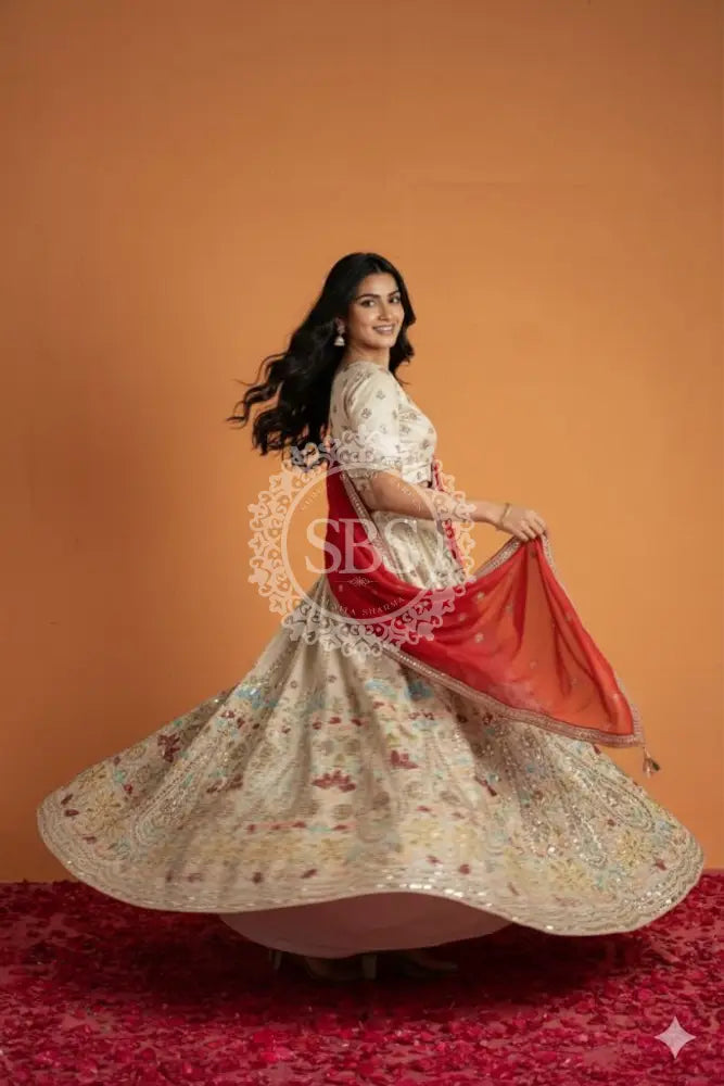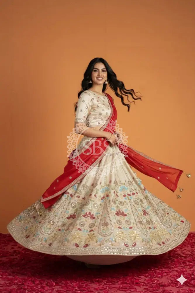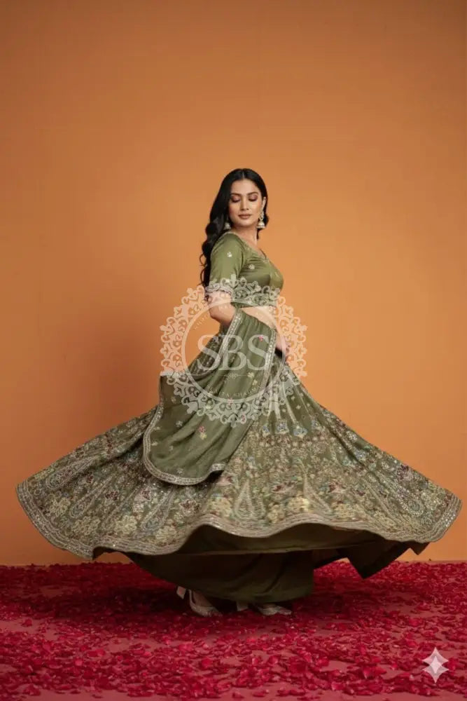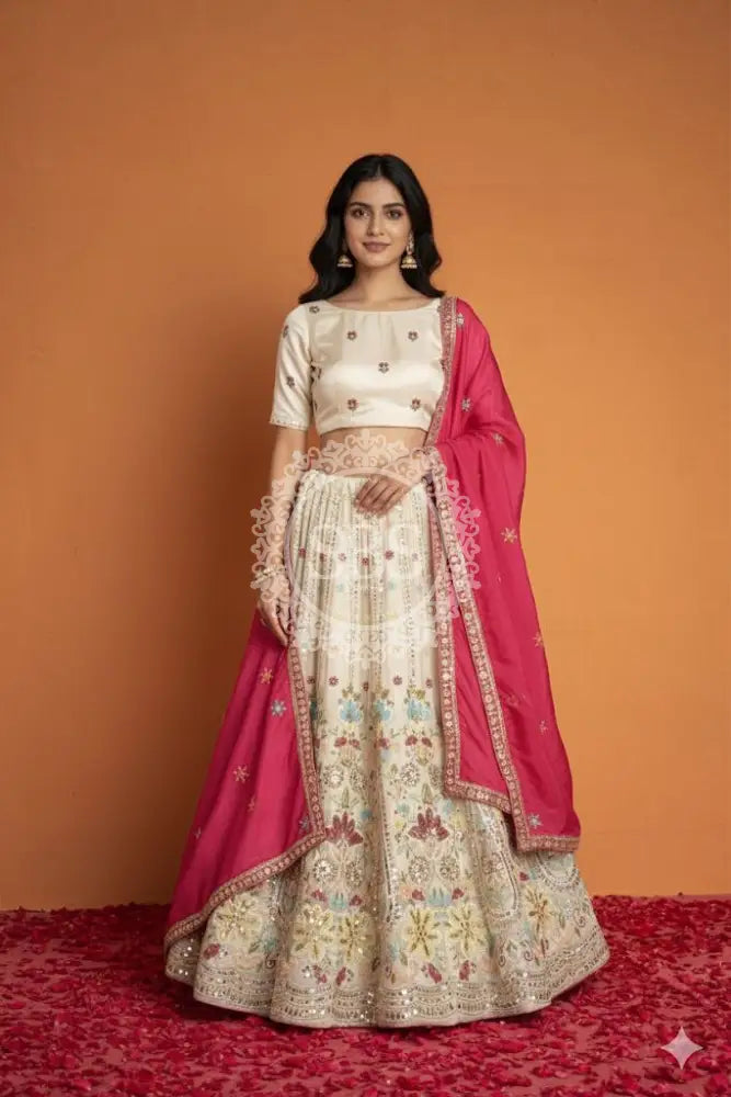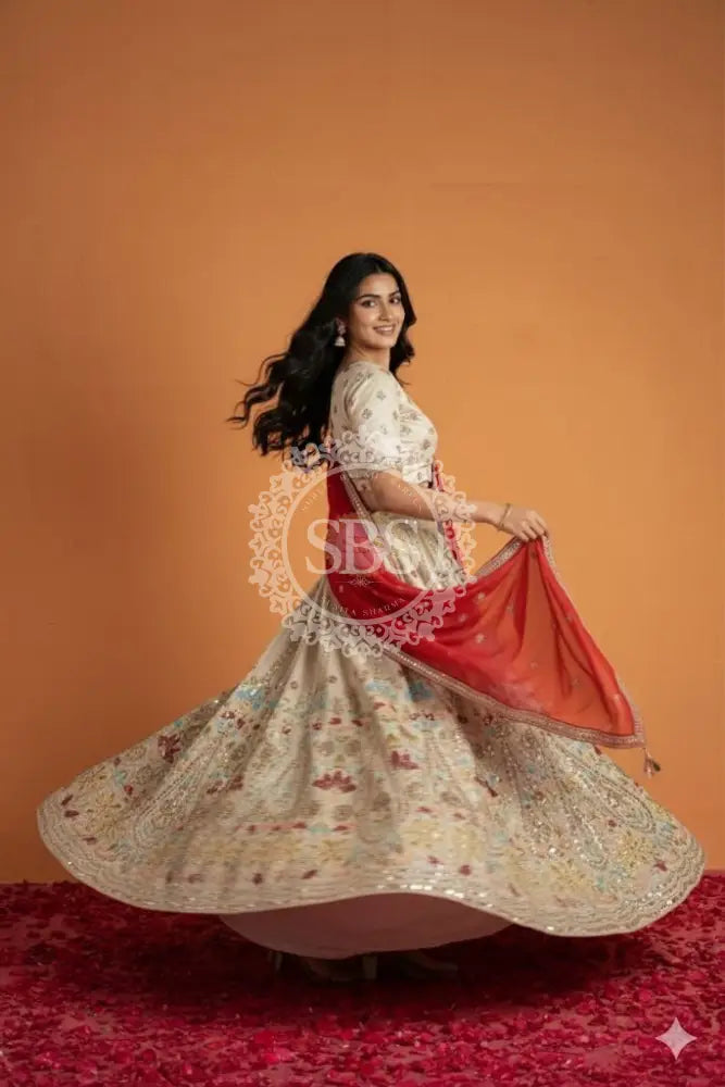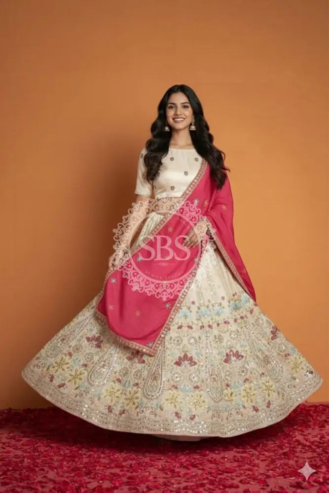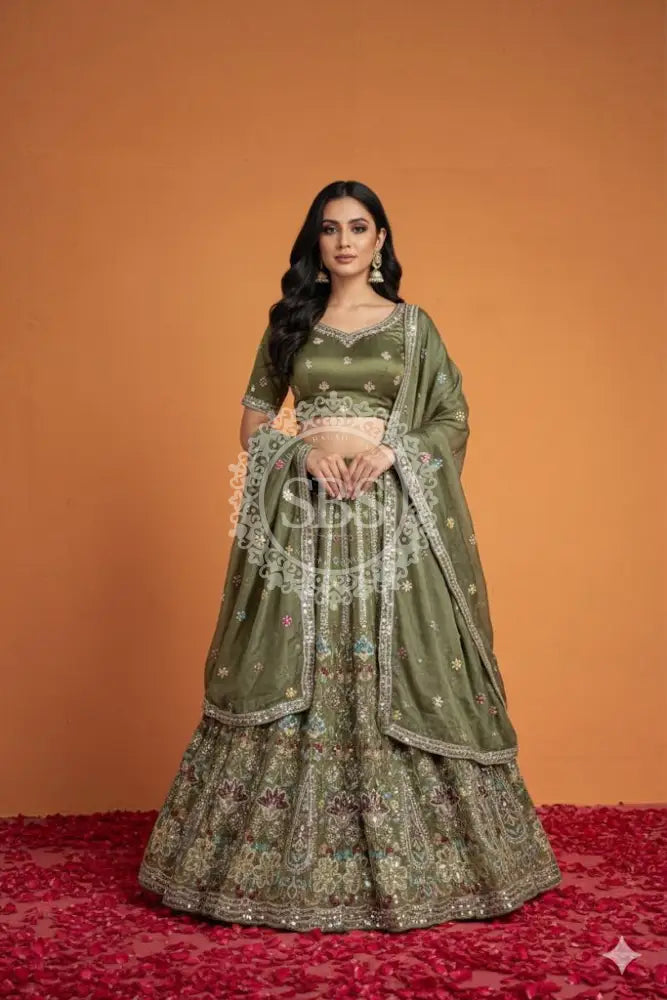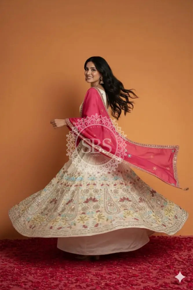 Pure Cosmos Floral Embroidery Lehenga Sky Blue