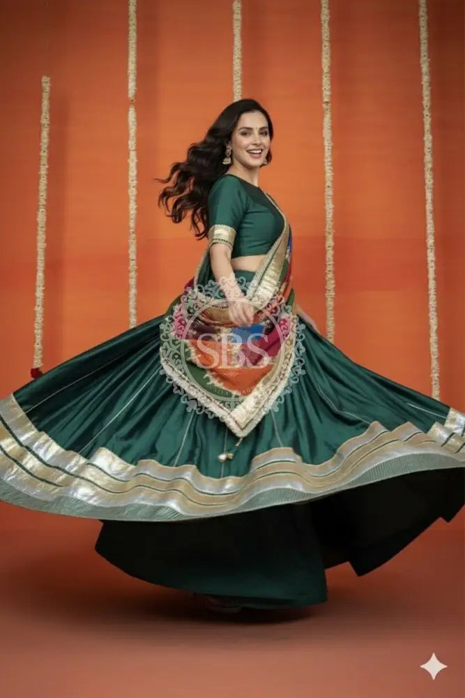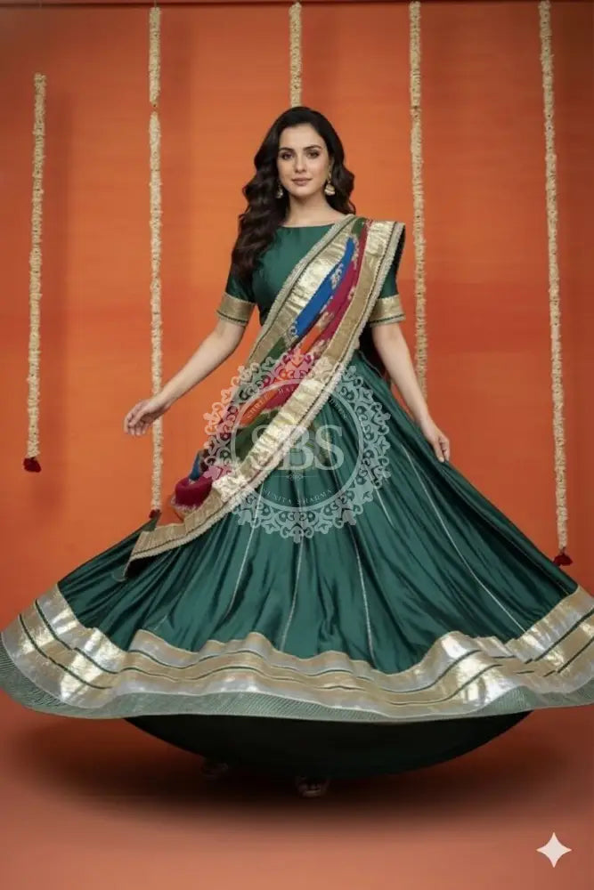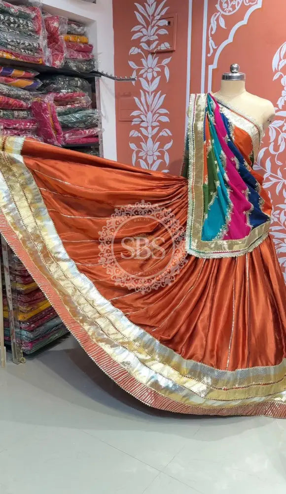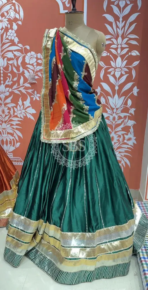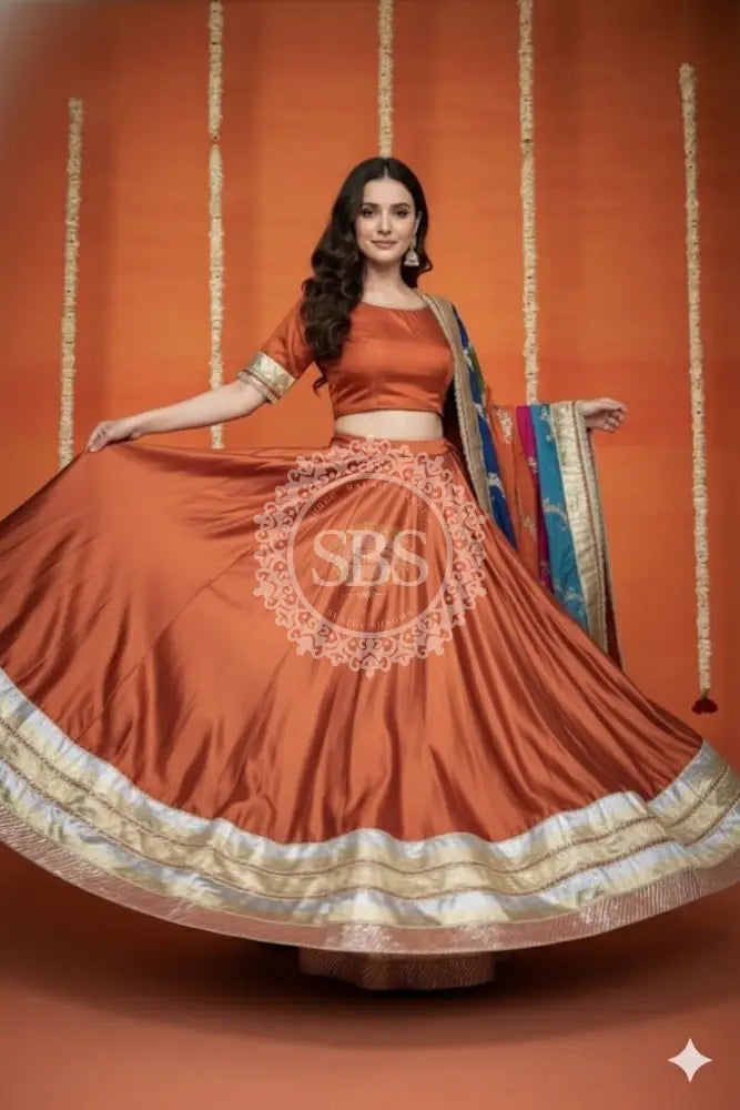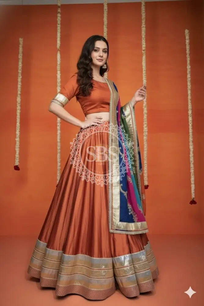 Pure Gazi Satin Silk Big Flare Lehenga with Pure Chinon Zari work Multicolour Dupatta