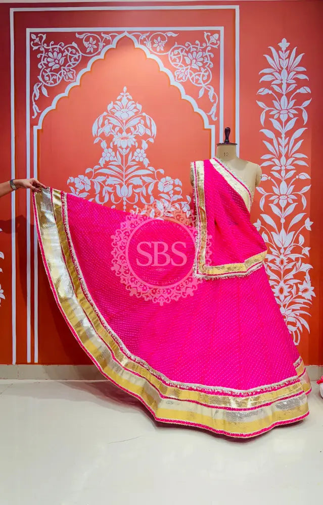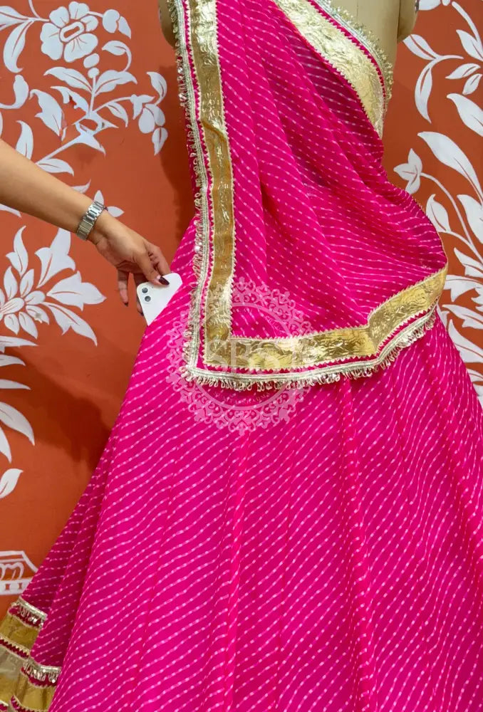 GEORGETTE GOLDEN SILVER WORK EXTRA FLARED LEHENGA Pink / Free Size