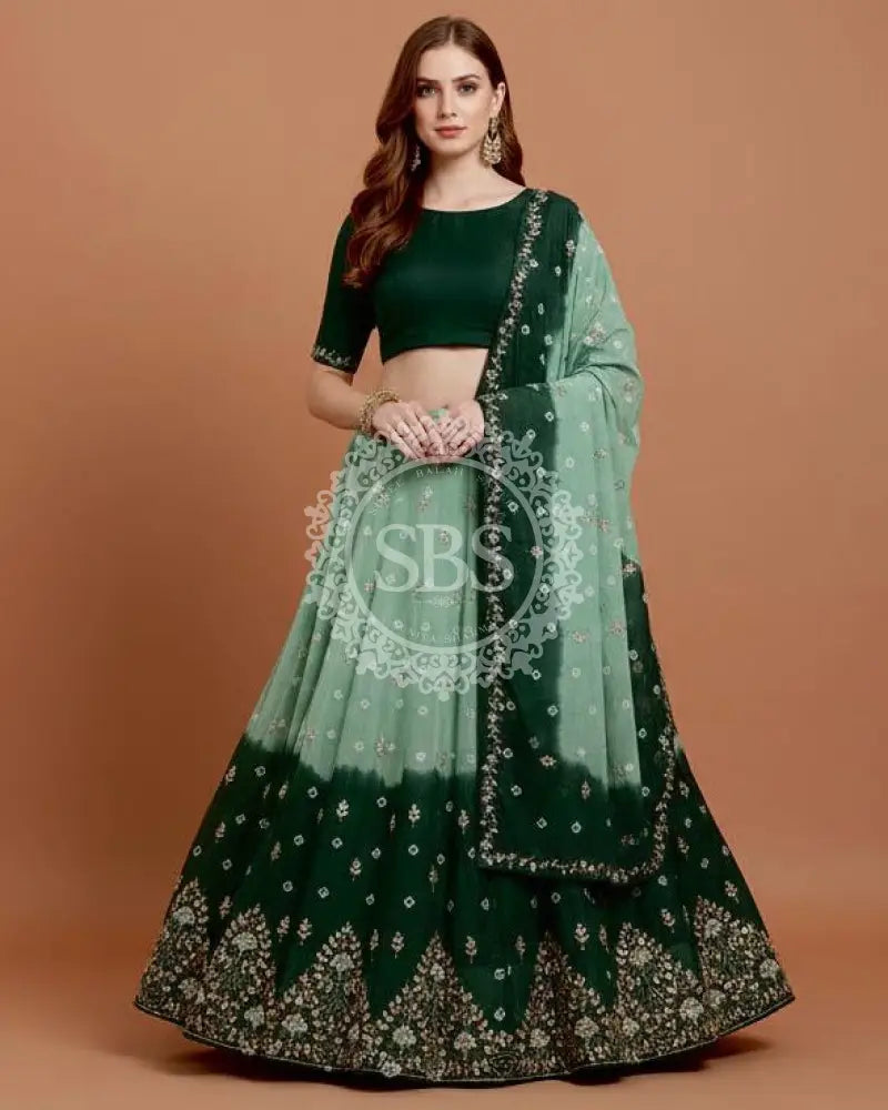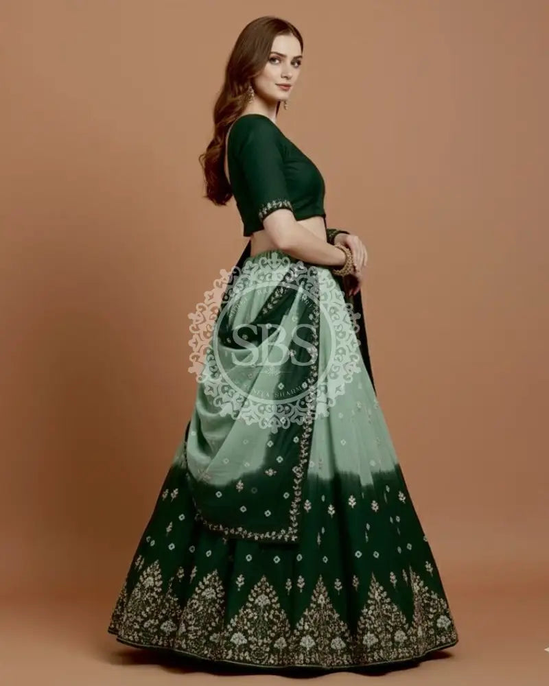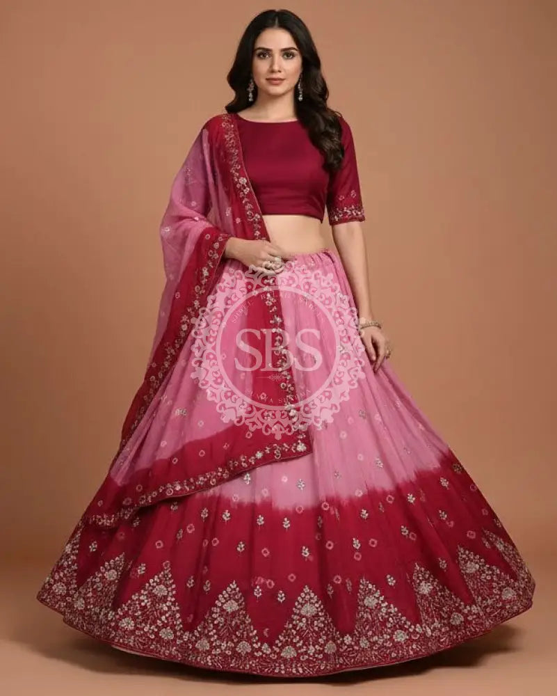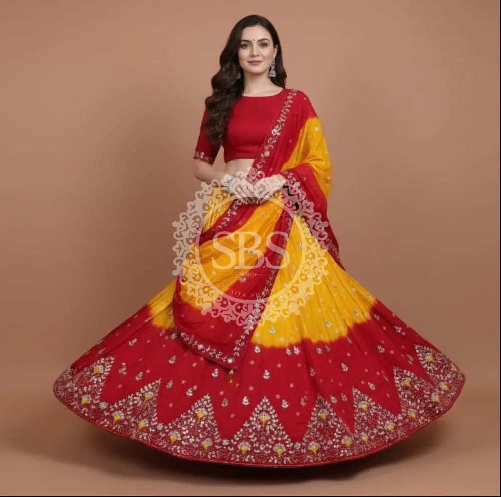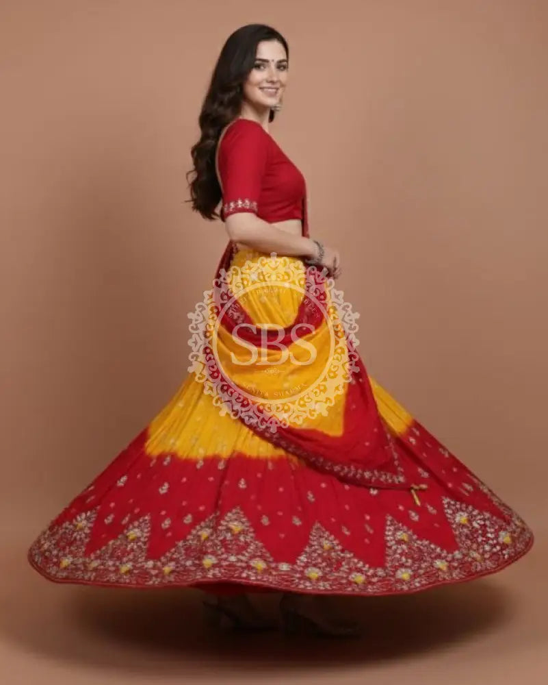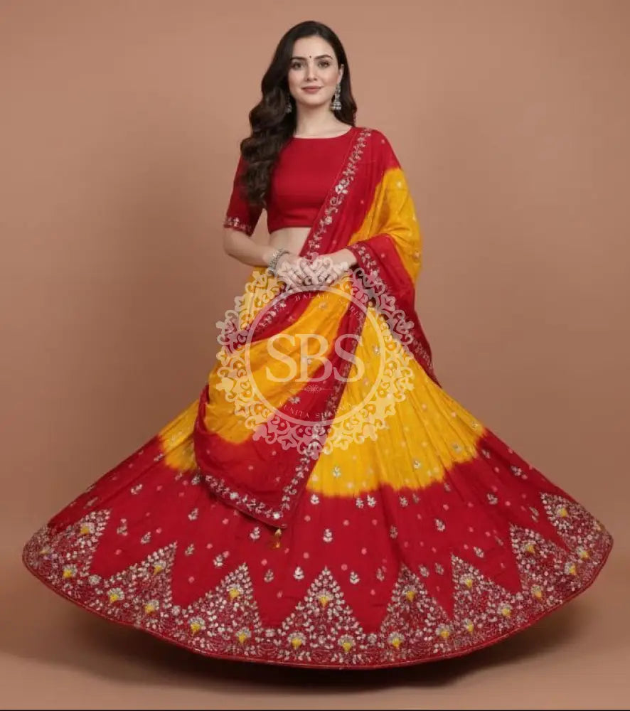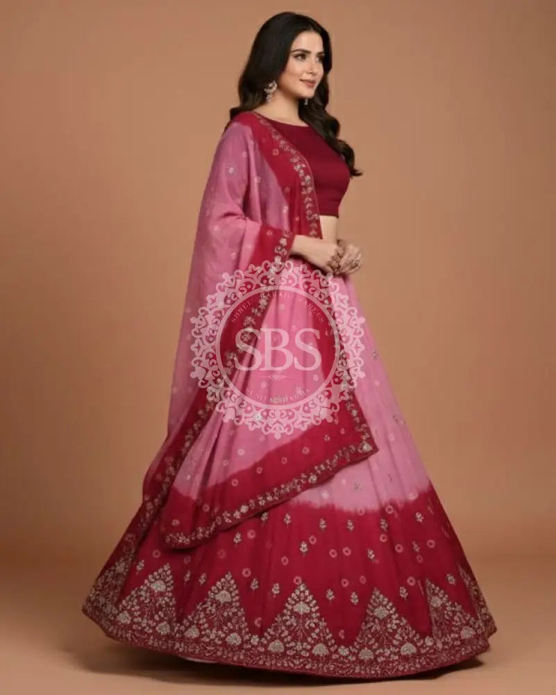 Pure Upada Silk double shade Lehenga with Bhandej and aari Tari work