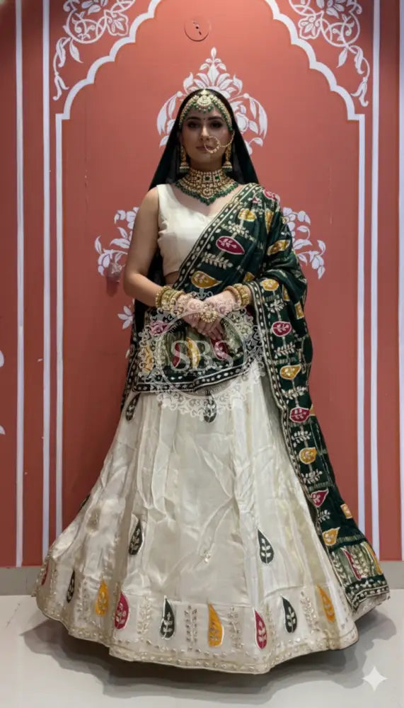 Pure gazi silk dupatta kacchi patti with pure tissue kacchi patti Lehenga