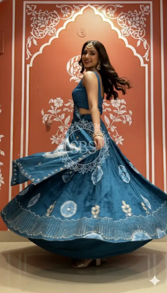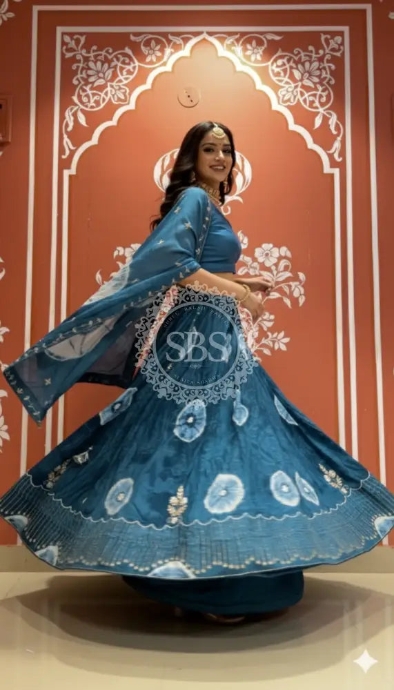 Pure Upada silk tie and die handwork Lehenga with pure organza dupatta