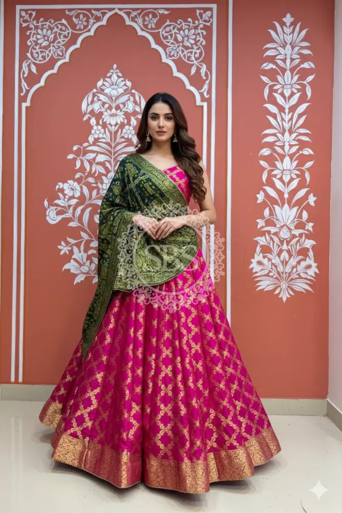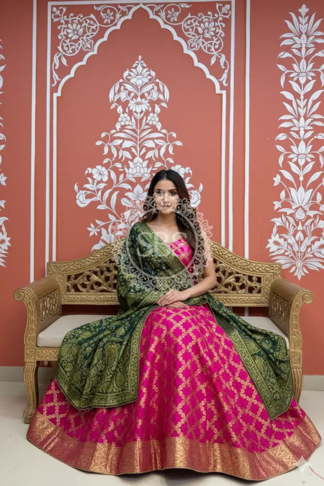 TAFETA SILK 24 KALI GHATCHOLA LEHENGA